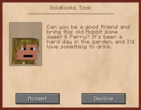 Пример квеста: Ноунейм Ноунеймер просит принести ему 70 балок лебетрона, чтобы организовать свадьбу любимой дочери.