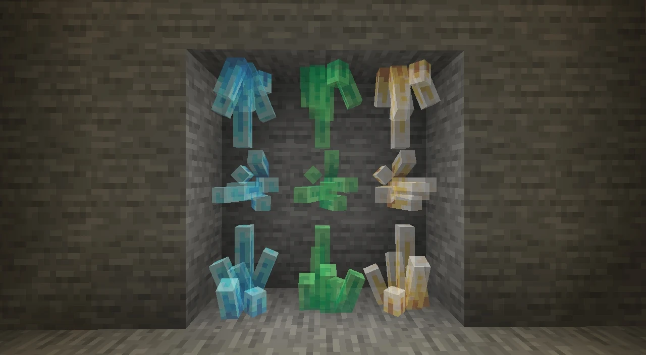 В этом снапшоте было добавлено несколько биомов, в том числе Лотлориэн с мэллорновыми деревьями и Железные холмы, а также Эмин Муил с гранитом вместо глины. Также были добавлены кристаллы, имеющие механику руд, но с очень красивой моделью. По биомам, пока нет структур, спавнятся верстаковые установки, чтобы игрок мог использовать верстаки в выживании.