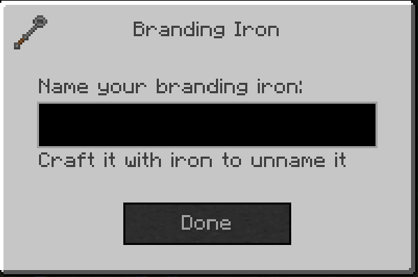 The Branding Iron is an item which can be used as an alternative to vanilla name tags.