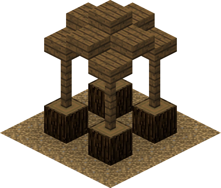 The stockade protects the walled village. It has a cobblestone foundation and is made of tree trunks of various wood types. Its height varies from about five to seven blocks (foundation included). Water, caves etc. may cause gaps in the stockade. At the entrance, where the road meets the wall, there is no gatehouse, just a gap in the stockade.