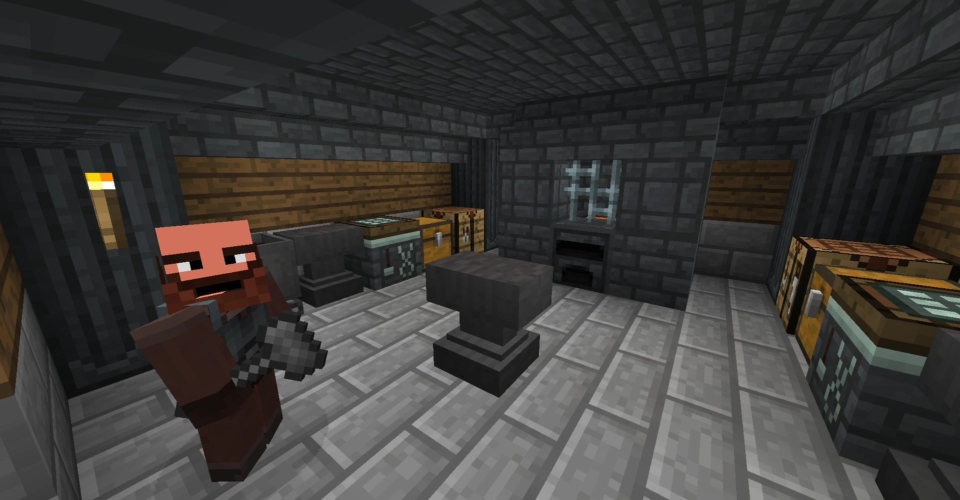 Dwarven smithies feature two loot chests, each containing an assortment of standard Dwarven loot. Aside from them, there are plenty of useful utility blocks to be found in these structures, including three Dwarven forges, three anvils, two Dwarven crafting tables, and two Unsmelteries.