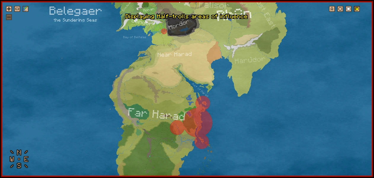 Perdorogwaith, Taur-i-Thorogrim, Far Harad, Southron Coasts, Harnennor, Harondor, Ithilien, Gondor (and all its sub-biomes), White Mountains, Far Harad Volcano.
