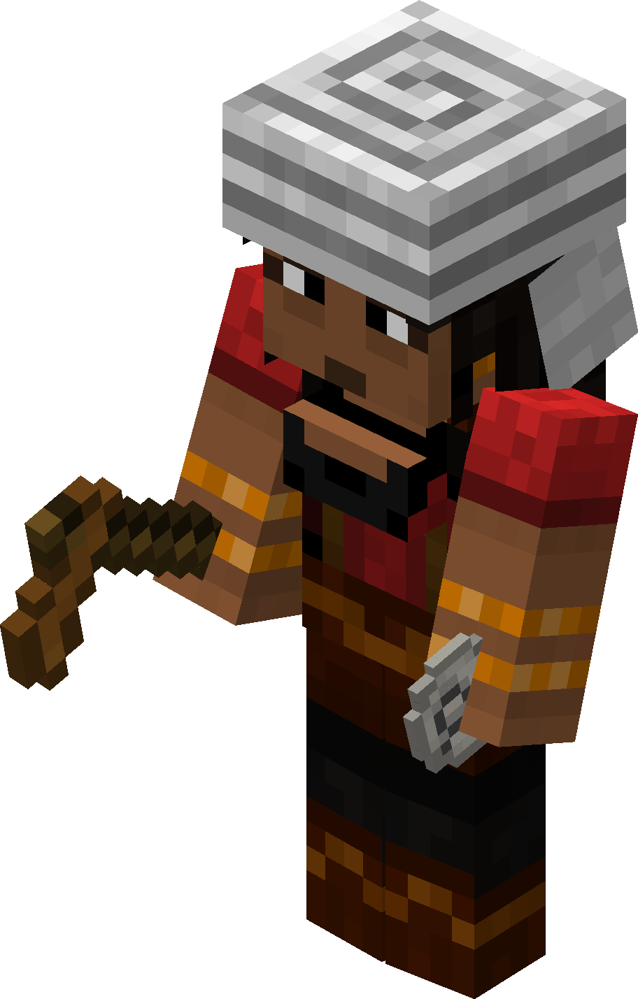 Can you imagine being all day out in the desert, mining sandstone? Afterwards working all the stuff to get ordinary or even carved bricks out of it? No? Then seek out a Harnennor stonemason in a bazaar. They are easily recognizable by a brick in their hand, which they also use to defend themselves when attacked. They sell mainly all kinds of Haradric bricks and red and white sandstone. They buy what they need for their business like pickaxes, cooked food, torches and buckets. You need positive or neutral Near Harad alignment to trade with them.