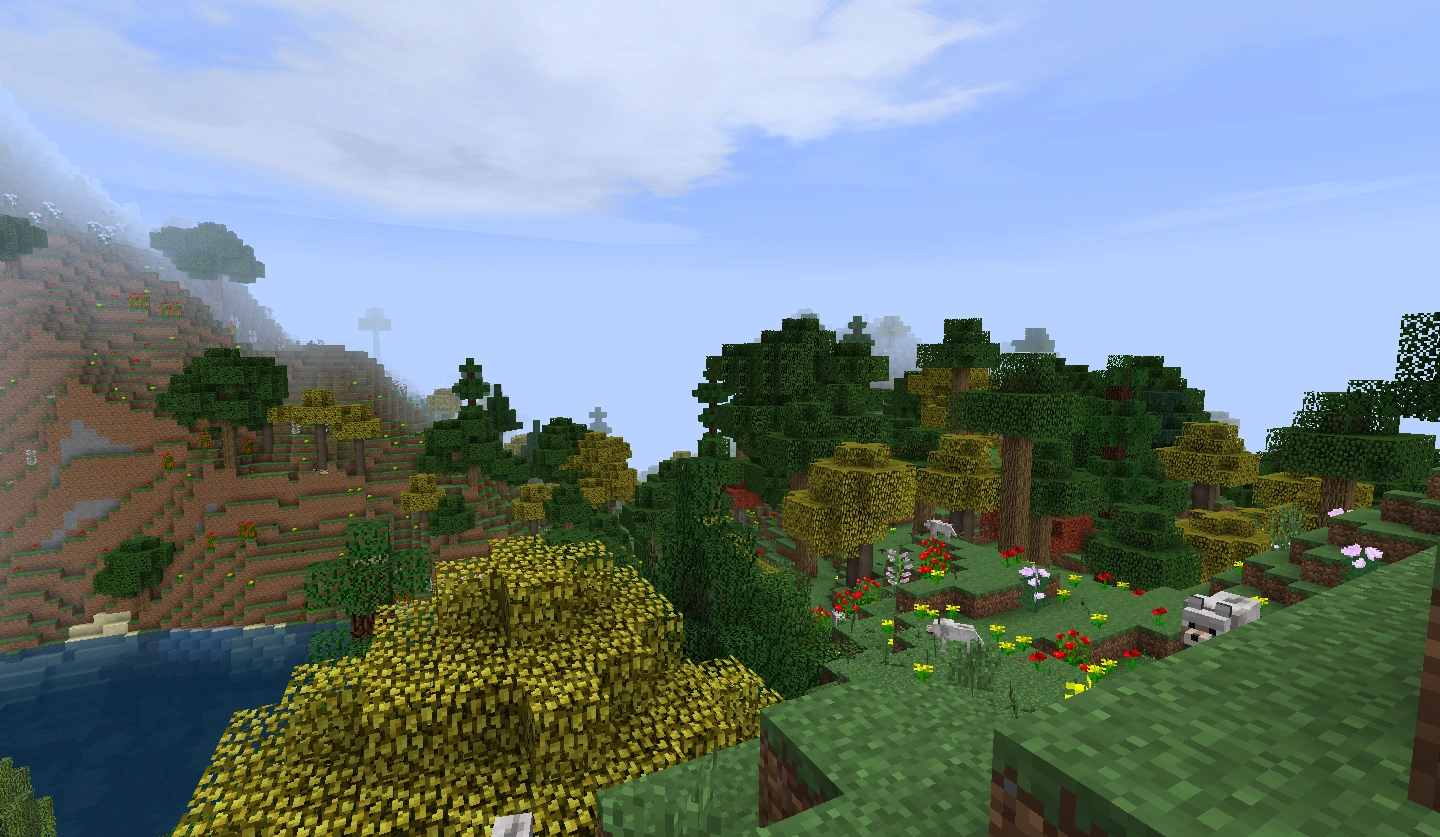- Flowers - The fields and the undergrowth of tree clusters teem with flowers in this biome. Flowery vegetation from both vanilla minecraft (poppies, dandelions) and the LotR Mod (thistles and wheat grass) is abundantly present here.